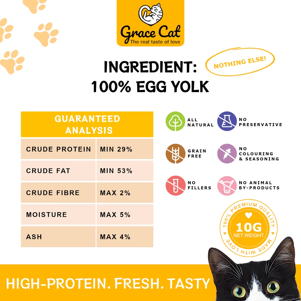 Freeze-drying involves freezing Grace Cat’s well chosen raw ingredients to -40°C right at the peak of their freshness, then removing the moisture content under high pressure and thus prevents bacteria growth. This keeps natural nutrients, enzymes and flavour of the raw ingredient itself intact. GraceFull RAW is shelf-stable raw food and ready-to-serve without hassle or mess!