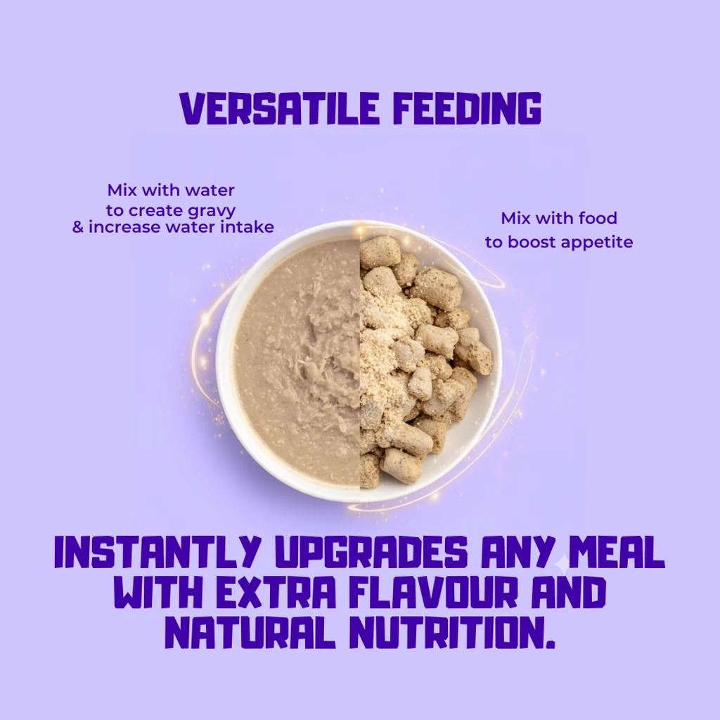 A topper powder that mixes easily with existing food. No force-feeding, no sticky gels.